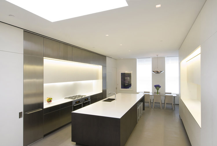 This 5-bed 5-bath penthouse in New York City’s SoHo neighborhood utilizes heavily detailed lighting integration to allow the owner’s art collection to shine; included in this collection: one of James Turrell’s only residential works. The effect of the light is the focus and not the lighting fixtures.